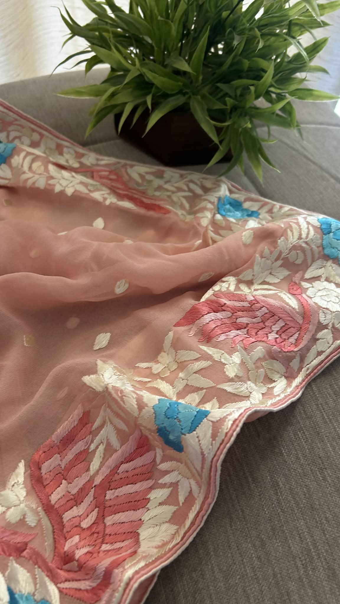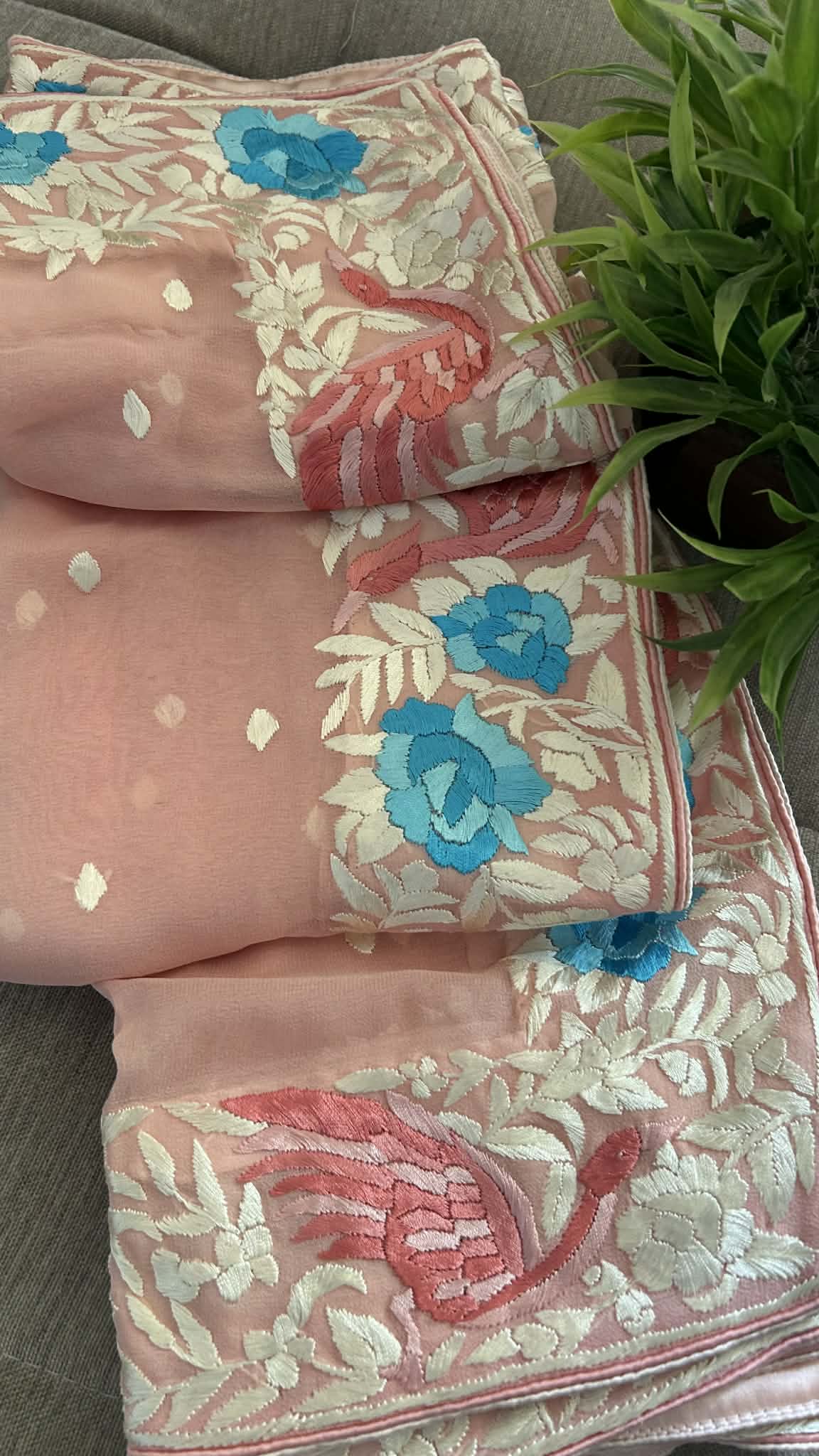 Parsi Gara is an intricate embroidered pattern and is famously known as ‘Painting in thread’. The timeless elegance of a traditional Parsi Gara is undeniable.