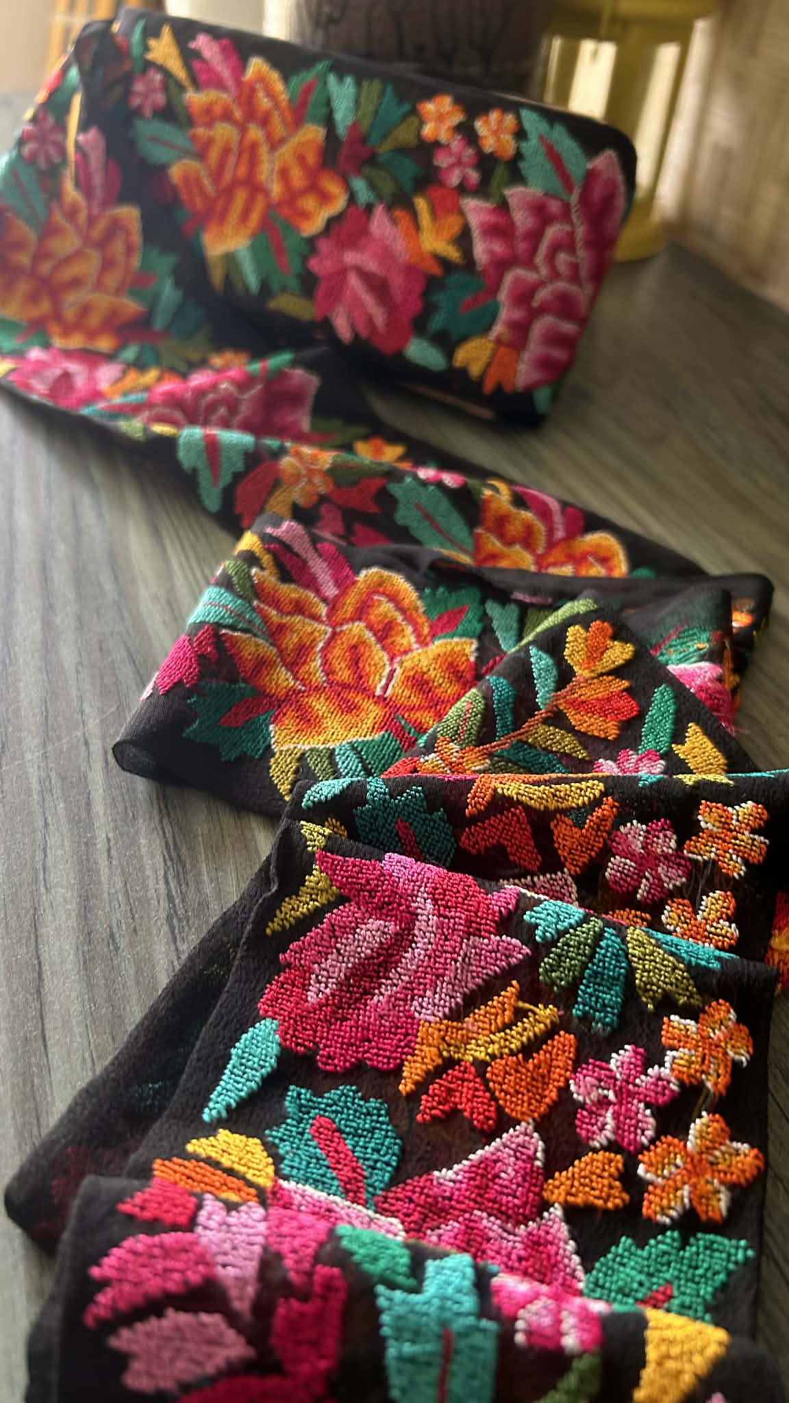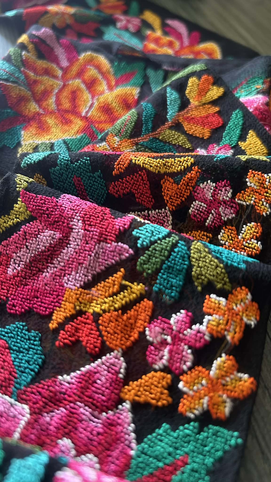 Each motif is meticulously hand-embroidered using the demanding Petit Point technique, where thousands of minute stitches come together to create a surface that is richly textured, almost painterly in its finish. The finesse lies in the discipline, every detail is intentional, every transition seamless.