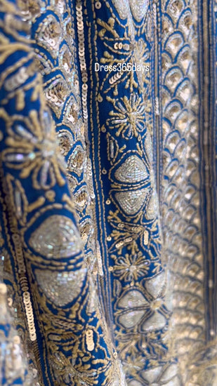 Royal Blue Masterpiece Cut Dana Sequin Chikankari Suit (Kurta & Dupatta)