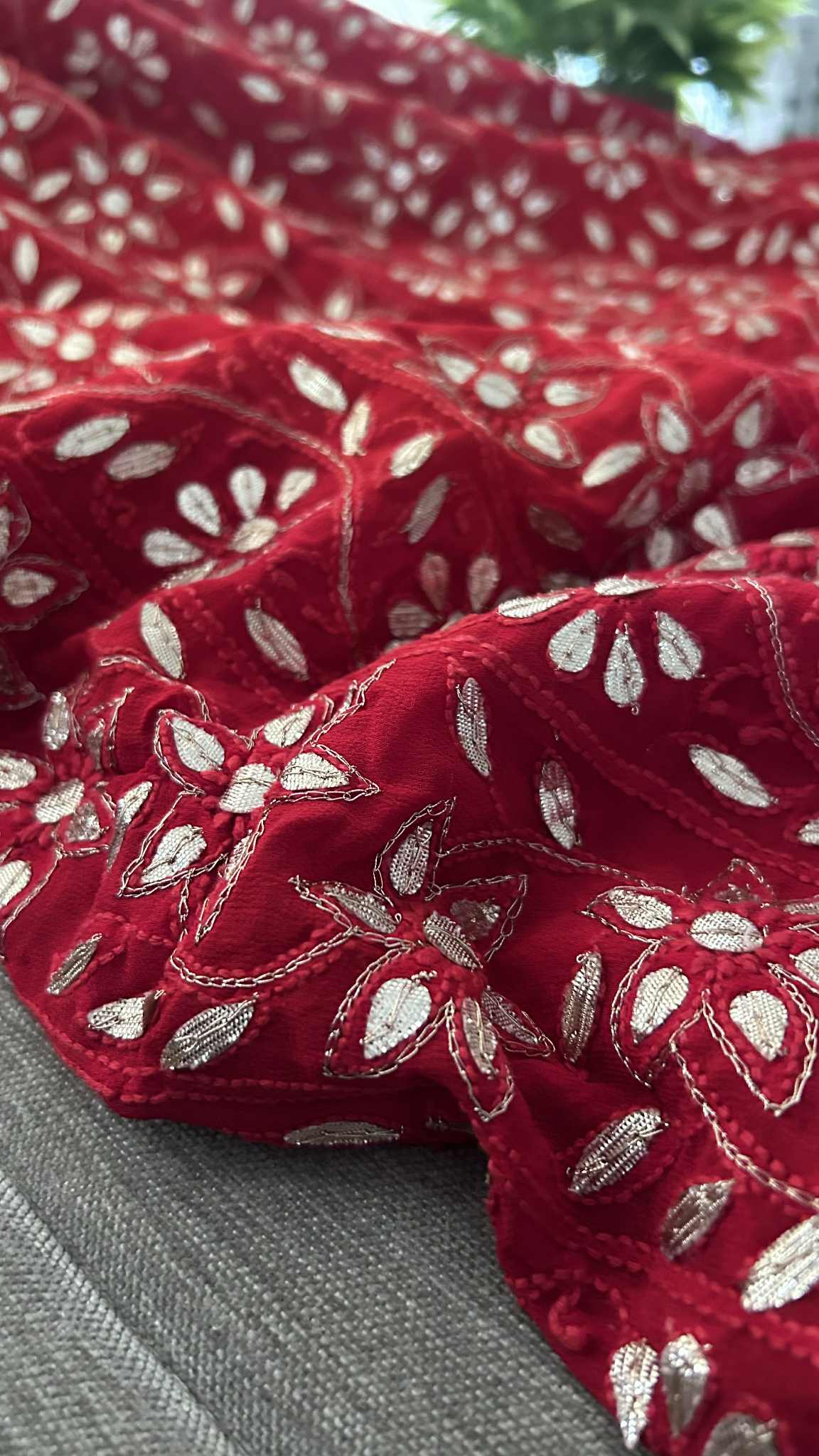 Red Gota Patti Unstitched Chikankari Suit (Kurta & Dupatta)