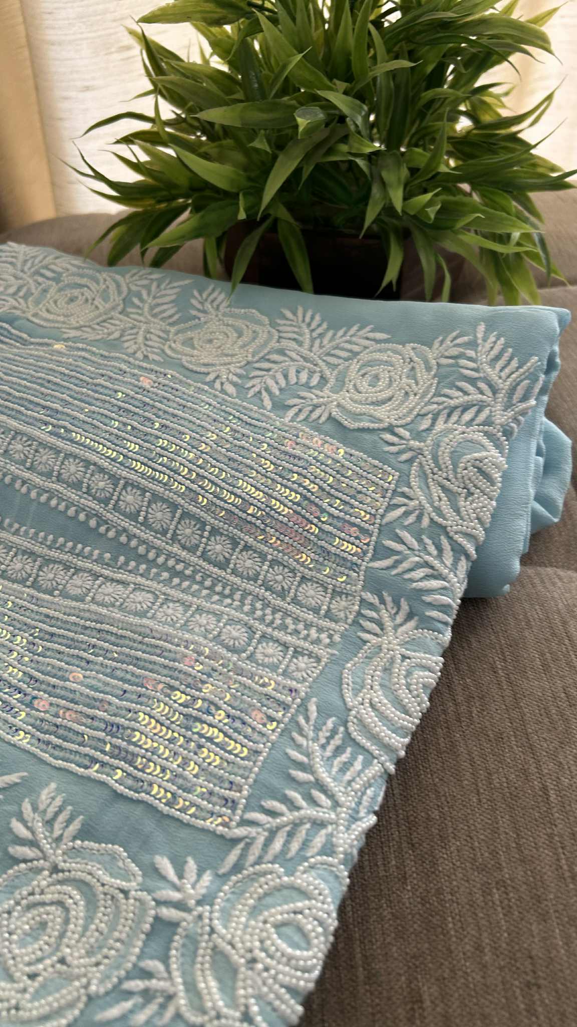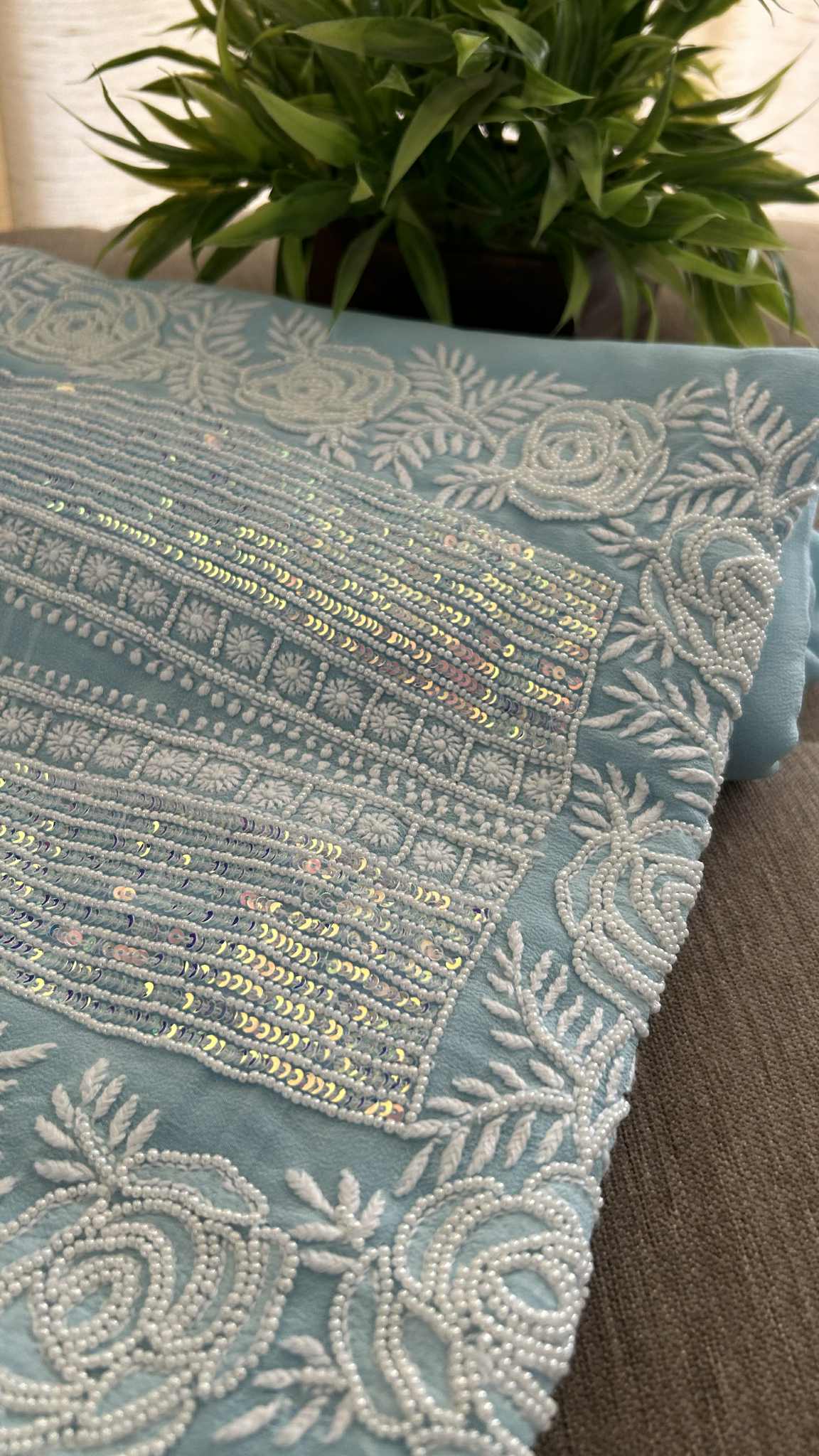 Sky Blue Pearl Lucknowi Chikankari Suit